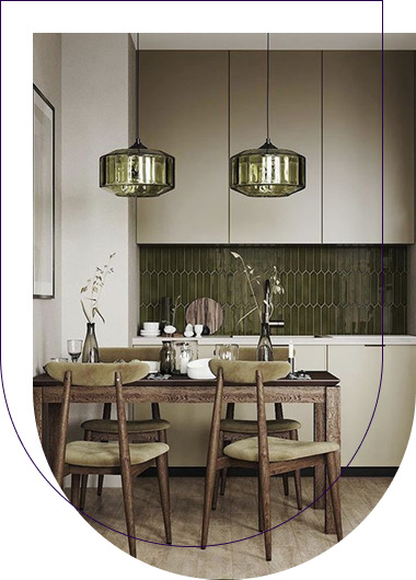 Only with us you can get advice and entrust us with the full range of work to create your ideal interior, including the development of a kitchen project, and the supply of furniture, kitchens, household appliances, sanitary ware, textiles, accessories and outdoor furniture to the facility.